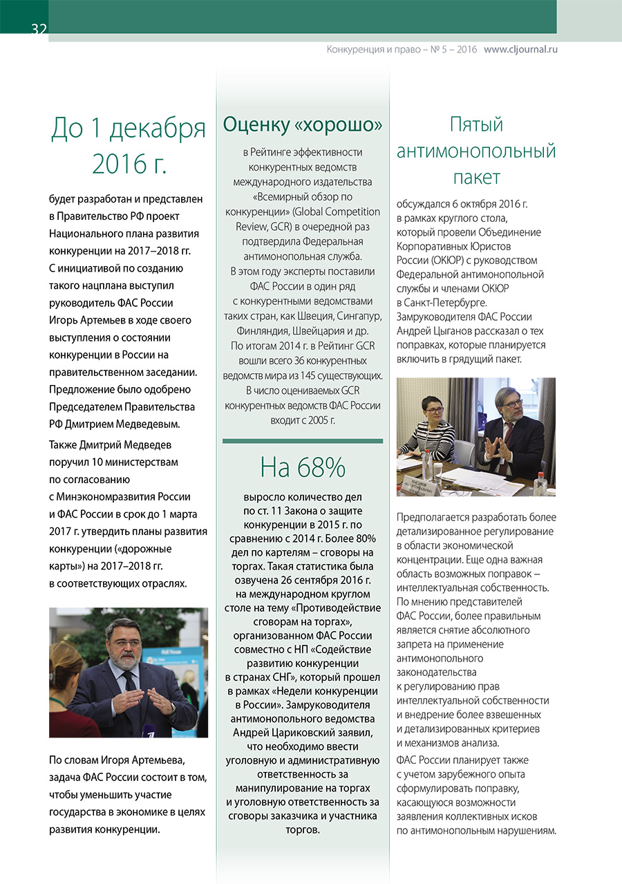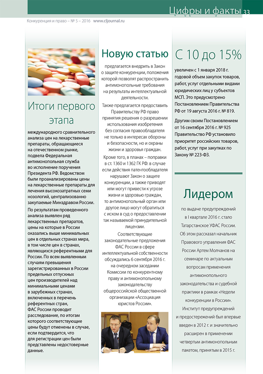 Цифры и факты. «Конкуренция и право» № 5, 2016 г.