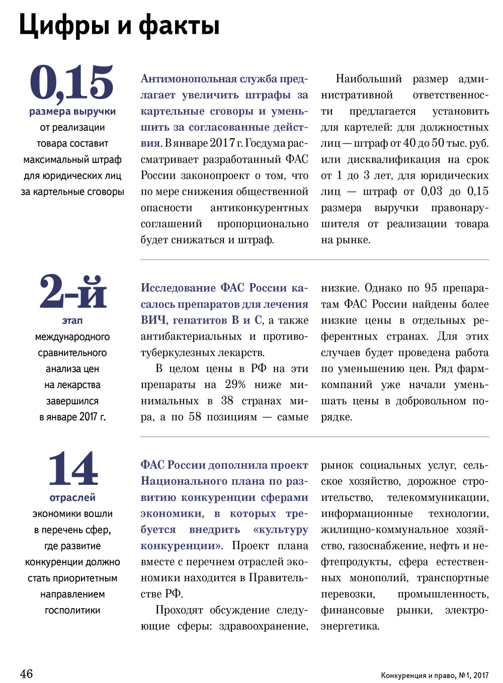 / Цифры и факты. «Конкуренция и право» № 1, 2017 г.