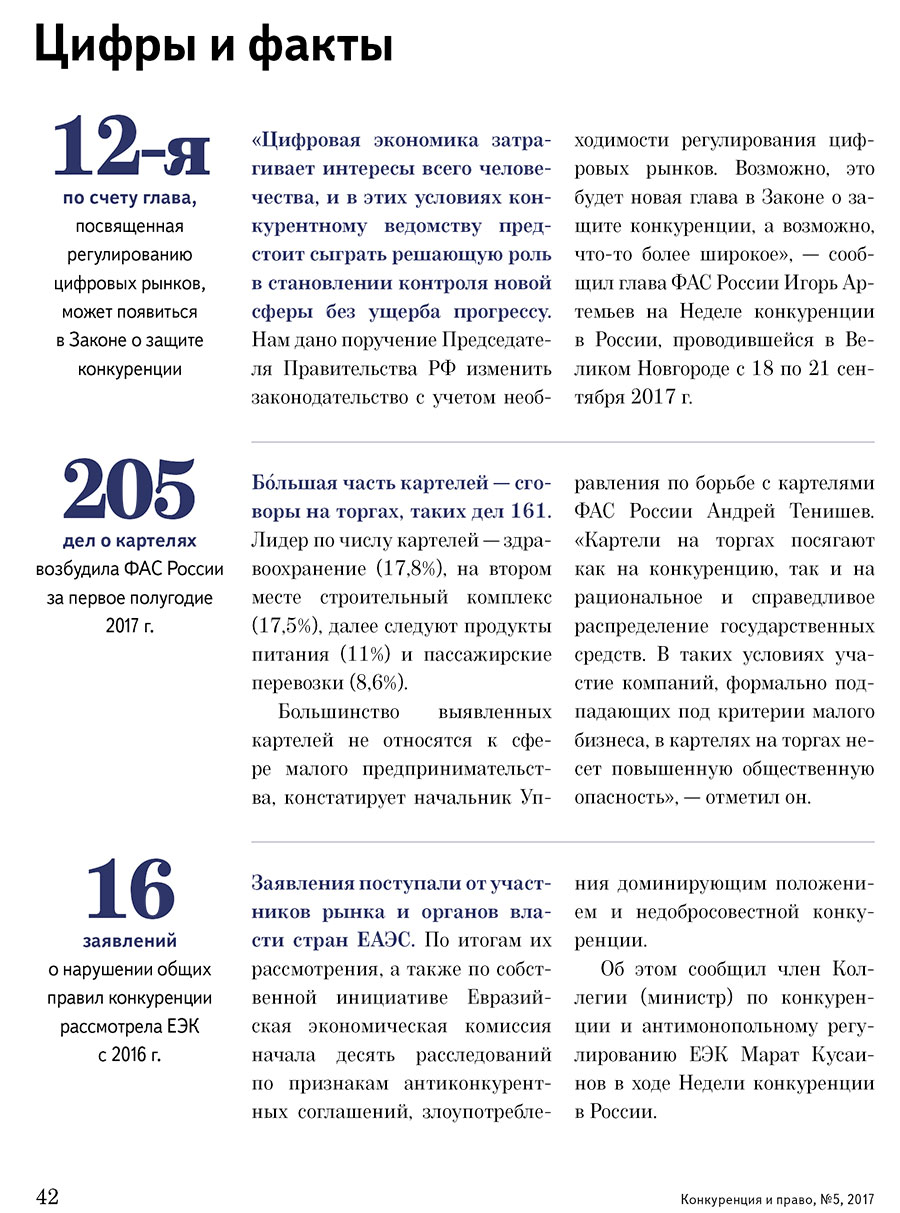/ Цифры и факты. «Конкуренция и право» № 5, 2017 г.