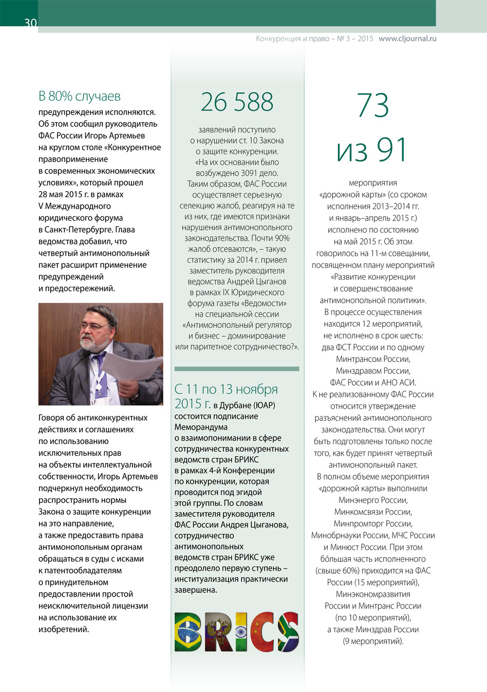 Цифры и факты. «Конкуренция и право» № 3, 2015 г.