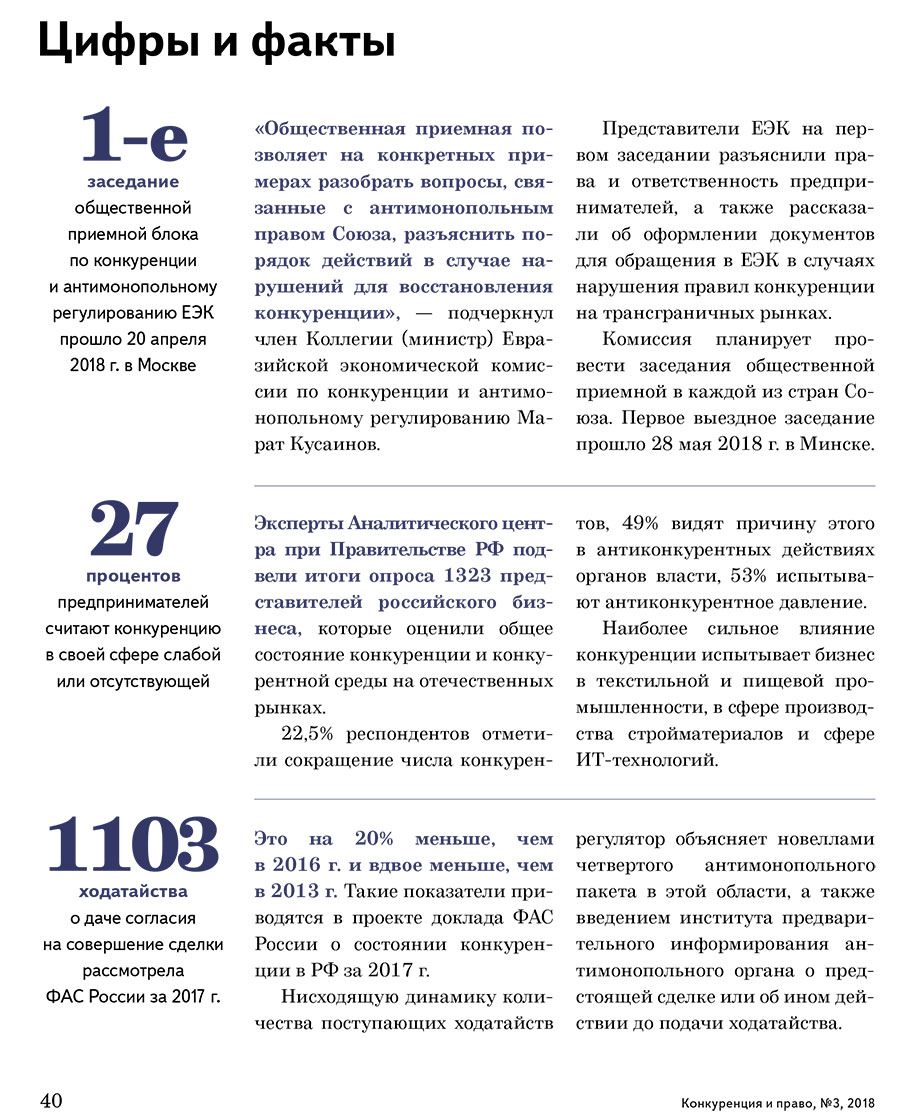 / Цифры и факты. «Конкуренция и право» № 3, 2018 г.