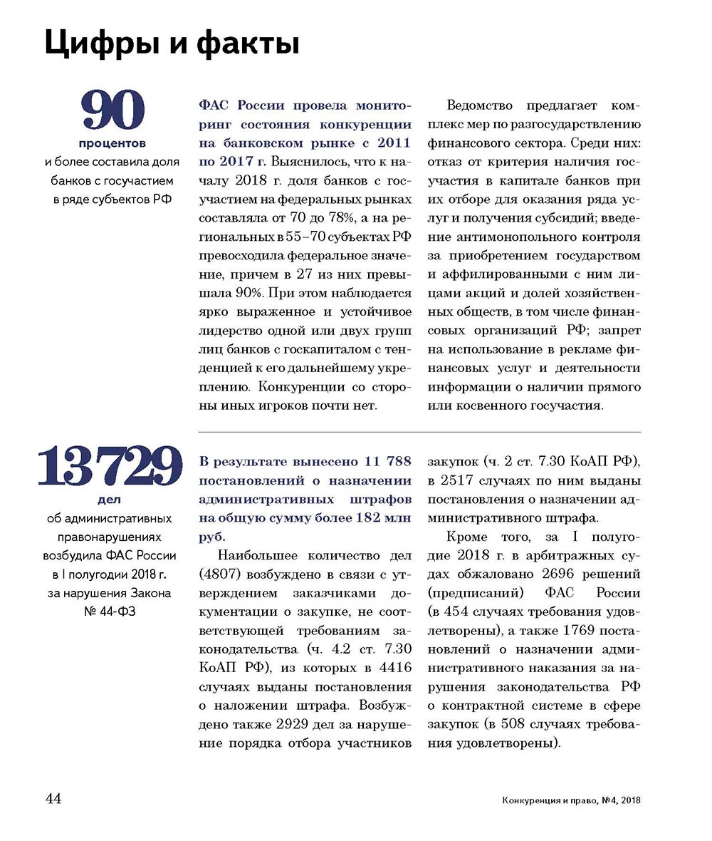 / Цифры и факты. «Конкуренция и право» № 4, 2018 г.