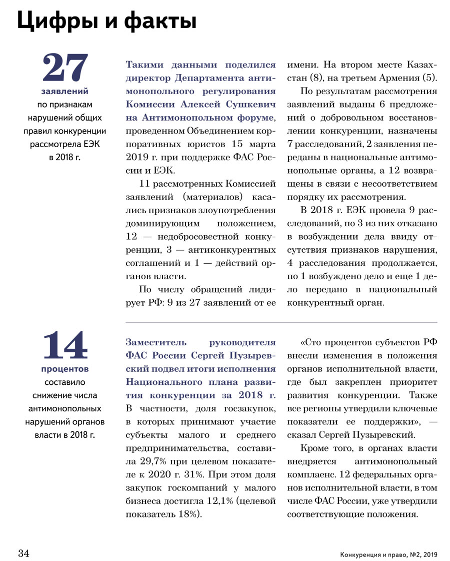/ Цифры и факты. «Конкуренция и право» № 2, 2019 г.