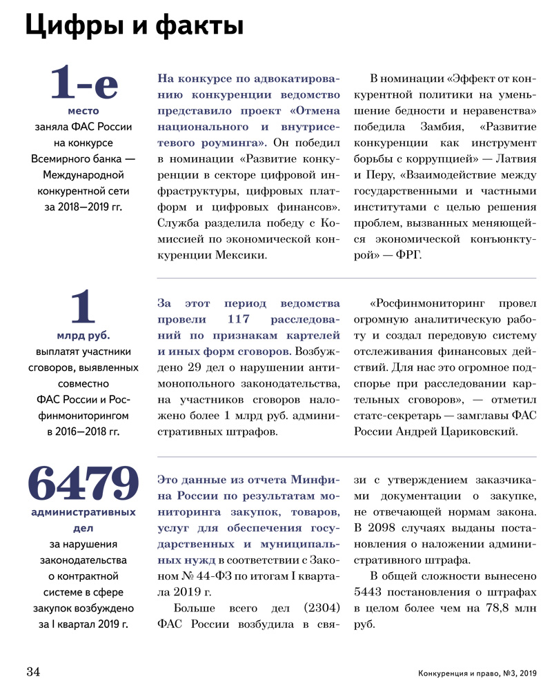 / Цифры и факты. «Конкуренция и право» № 3, 2019 г.