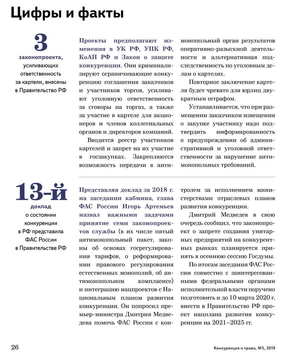 / Цифры и факты. «Конкуренция и право» № 5, 2019 г.