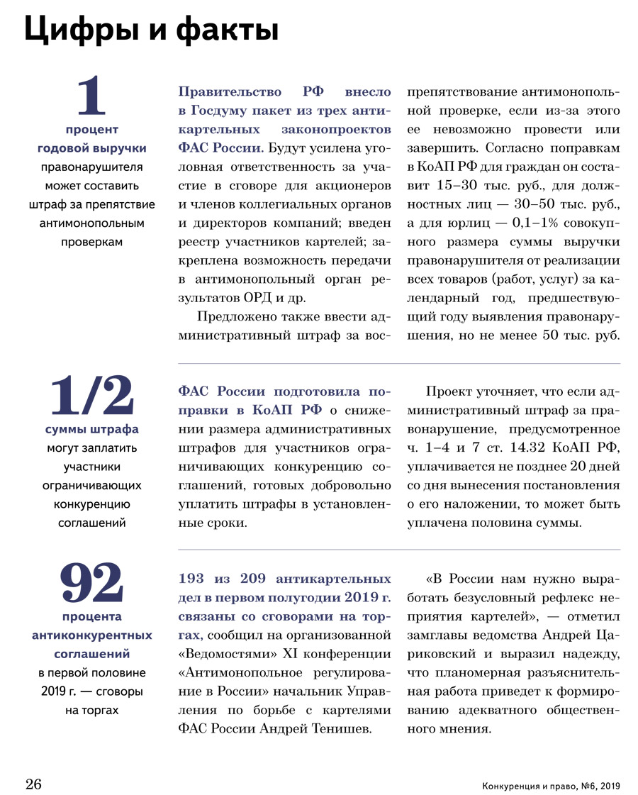/ Цифры и факты. «Конкуренция и право» № 6, 2019 г.