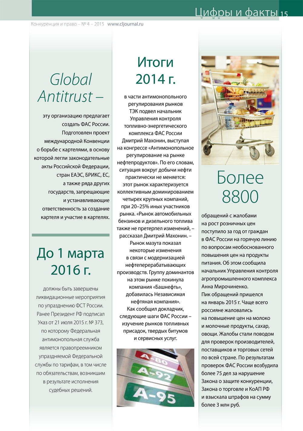 Цифры и факты. «Конкуренция и право» № 4, 2015 г.
