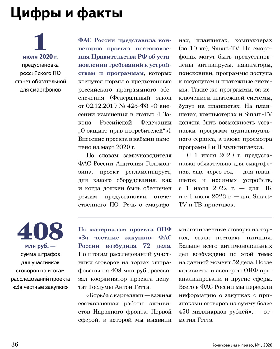 / Цифры и факты. «Конкуренция и право» № 1, 2020 г.