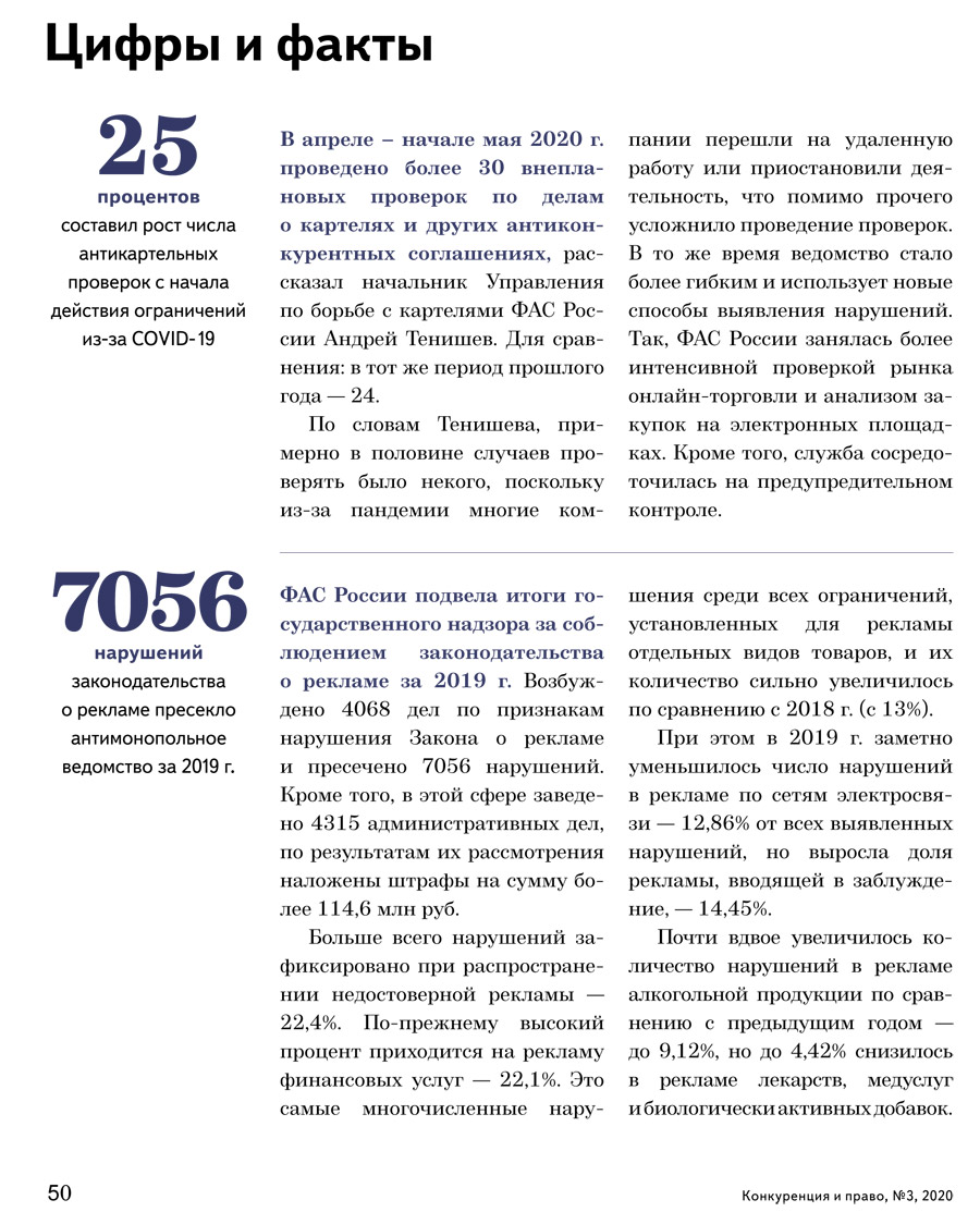 / Цифры и факты. «Конкуренция и право» № 3, 2020 г.
