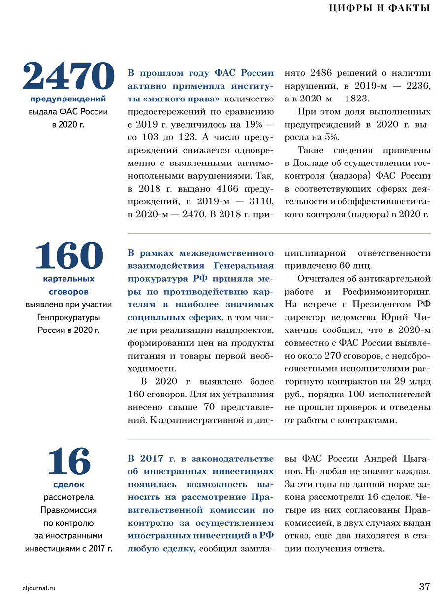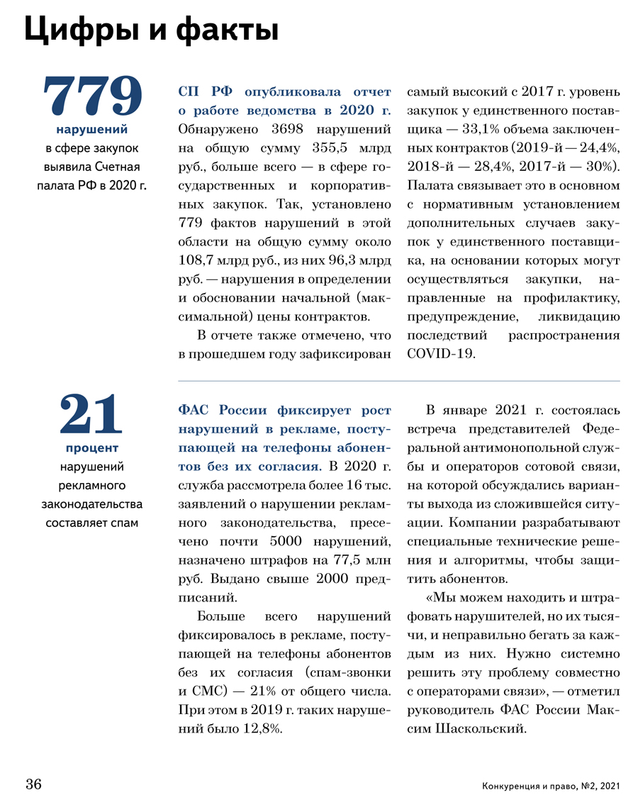 / Цифры и факты. «Конкуренция и право» № 2, 2021 г.