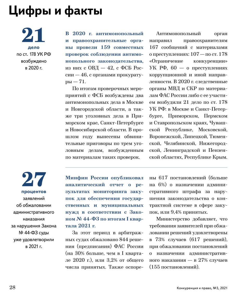 / Цифры и факты. «Конкуренция и право» № 3, 2021 г.