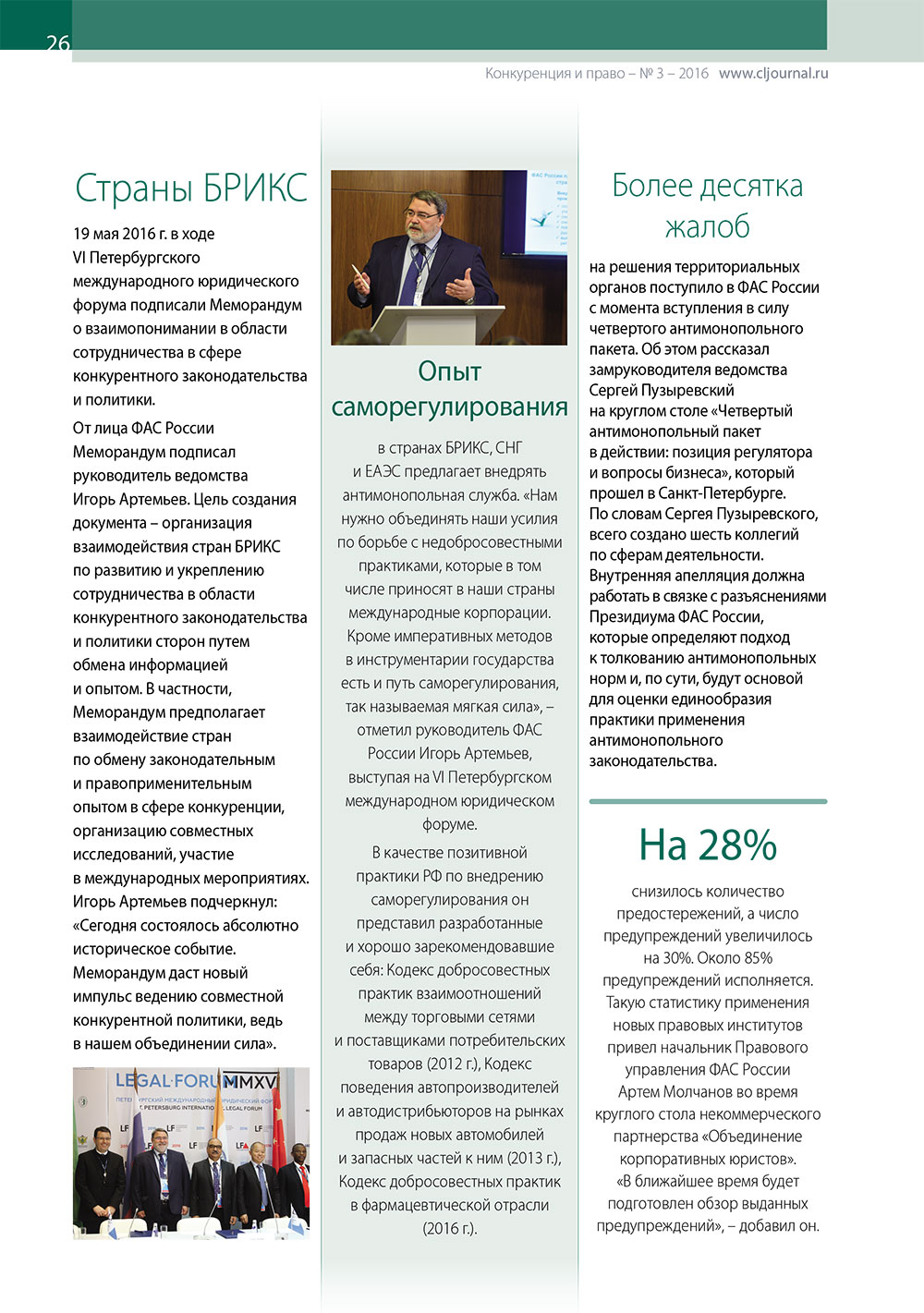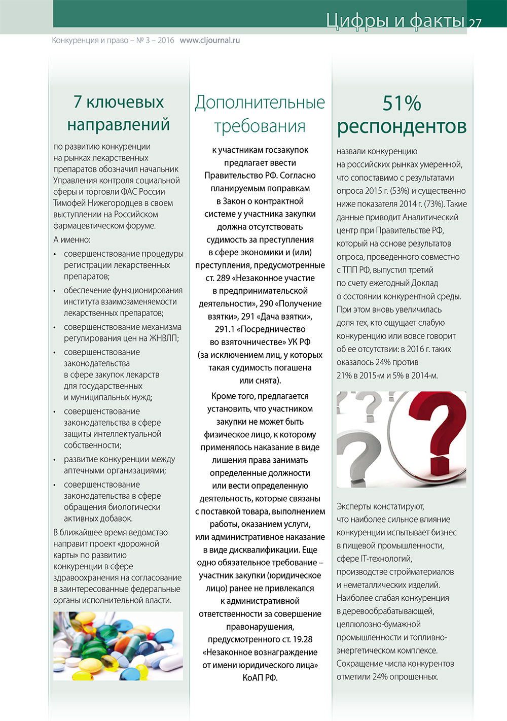 Цифры и факты. «Конкуренция и право» № 3, 2016 г.