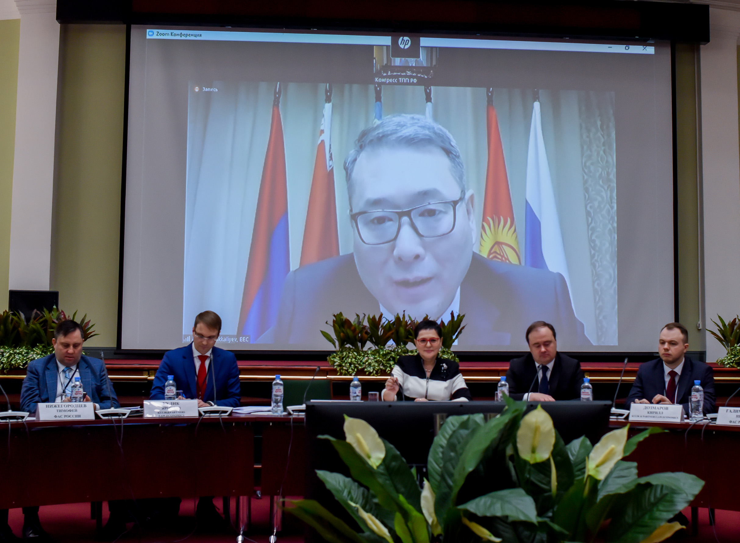 Далее по видео-конференц-связи выступил член Коллегии (министр) по конкуренции и антимонопольному регулированию ЕЭК Арман Шаккалиев. Он рассказал о формировании благоприятной конкурентной среды в Евразийском экономическом союзе.