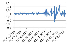 Темп роста валютного курса (к предыдущему дню) |