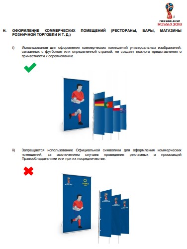Напомним, например, что использование символики Кубка конфедераций FIFA 2017 и последующего за ним чемпионата мира по футболу FIFA 2018 может повлечь нарушение Закона о защите конкуренции (в части недобросовестной конкуренции) и Закона о рекламе: spb.fas.gov.ru/news/10137.
